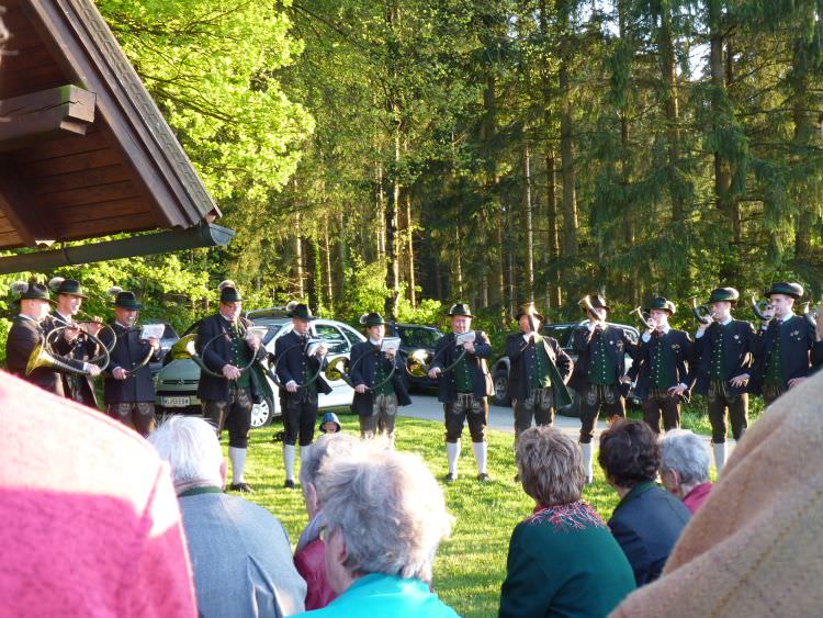 Zahlreiche Jäger und Freunde der Wimsbacher Jägerschaft trafen sich bei der Hubertuskapelle zur Maiandacht.